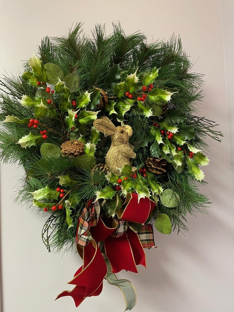 Christmas Holly Berry Pine Pinecone Wreath 24"