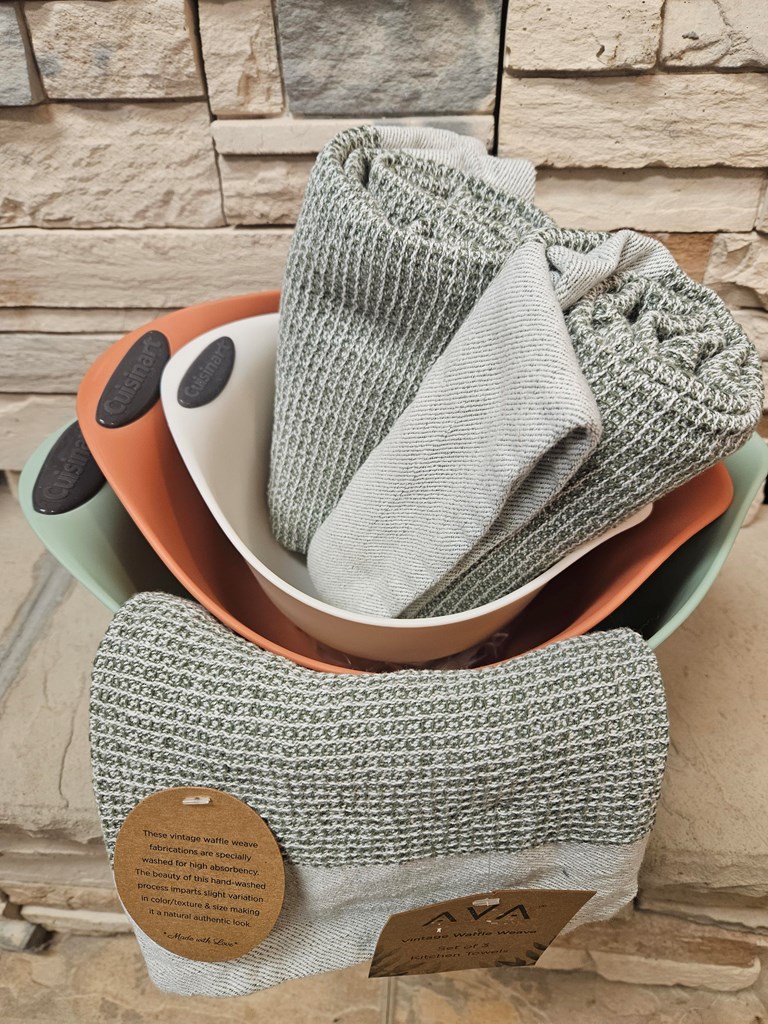 Set of 3 Cuisinart mixing bowls Set of 3 waffle weave kitchen towels