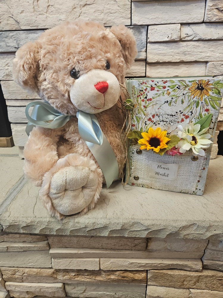Bear Recovered Hymnal with flowers